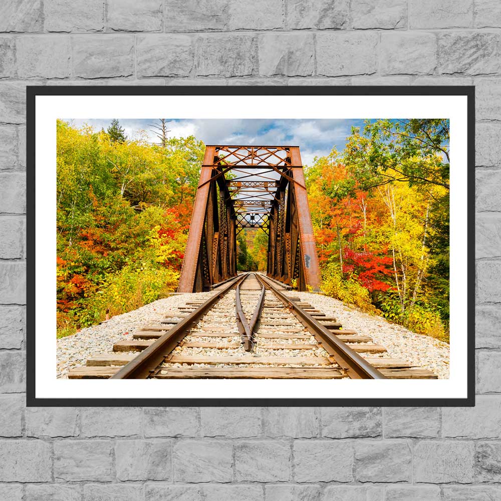 Fourth Iron Trestle Bridge was originally built by the Main Central Railroad to span the Sawyer river. Currently the Conway Scenic Railroad trains use this bridge This picture was taken during for the fall foliage, and captures